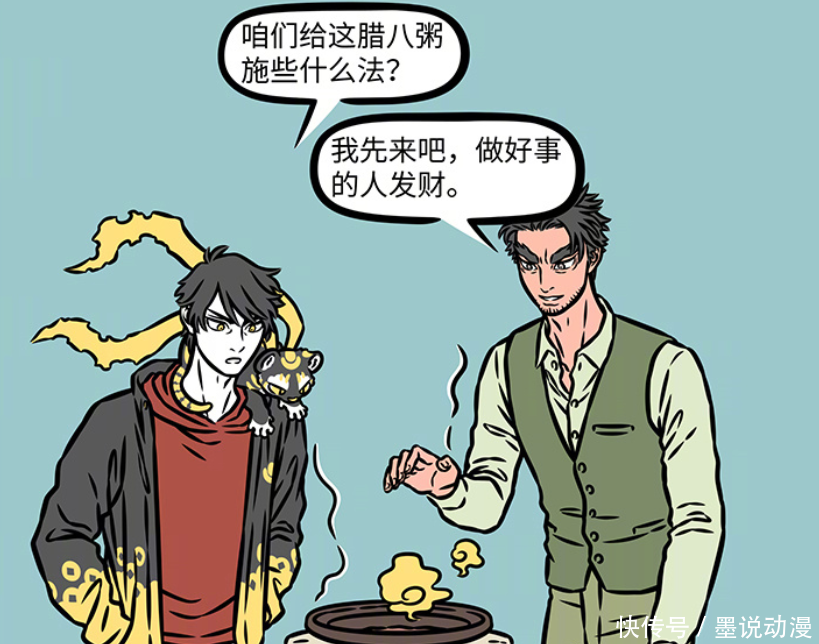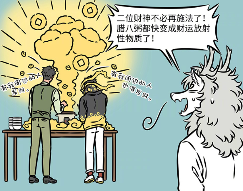 那么腊八粥到底是怎么制作的?流程是没画出来,但注入法力的流程如故有进展。财神赵公明和关羽一说念征询,要给腊八粥内部施点法术。关羽先来,只好作念善事的东说念主,就会发家。