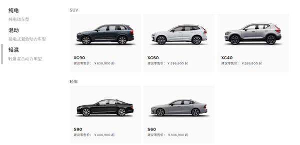 当今沃尔沃悉数车型的能源分为三种:纯电,插混和 48V 轻混。