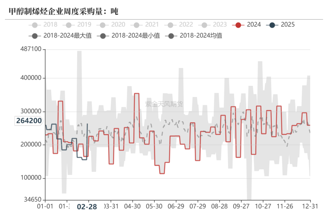 烯烃企业采购量大幅回升,MTO安设重启烯烃采购量阶段性上行;传统卑鄙企业采购量周内小幅回落,基本回到往年同期水平,传统需求仍有韧性。
