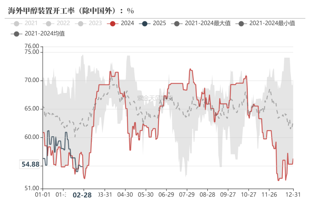 鸿沟2月20日当周,世界甲醇安设开工率73.1%,其中煤制甲醇安设开工率78.9%,焦炉气制甲醇安设开工率58%,自然气制甲醇安设开工率48.6%。