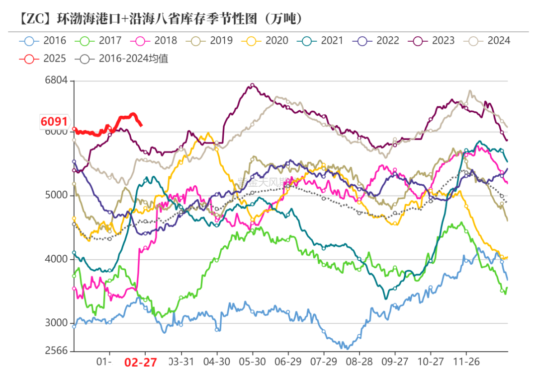 煤炭价钱偏弱,坑口煤和化工煤价钱均较着着落,主要由于供应偏高,且面前口岸库存督察往年同期高位,短期展望煤炭价钱督察偏弱。