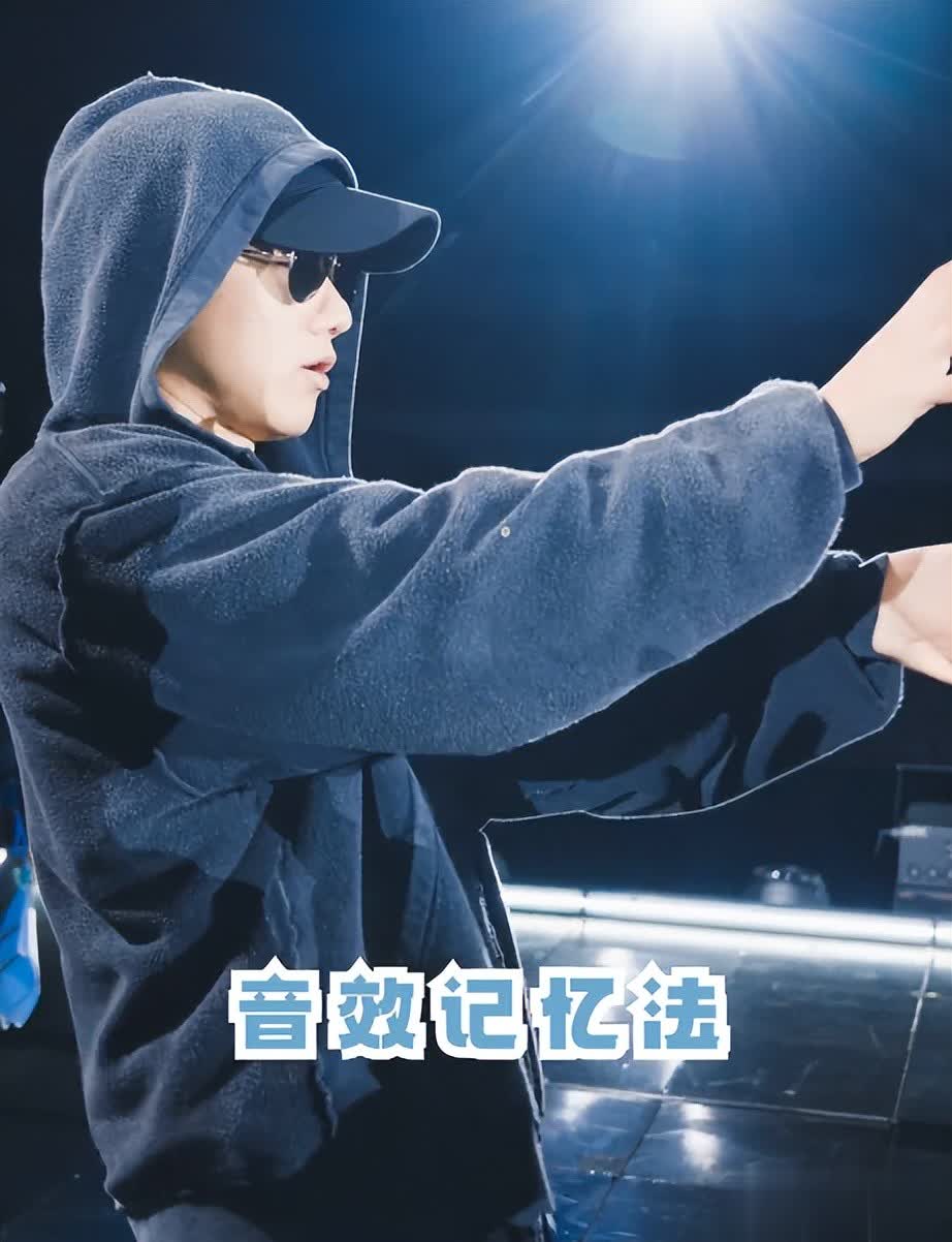 接着转场到他排演的镜头,他来到场面调试了树立,并列练了跳舞算作,还临场加了几个算作。