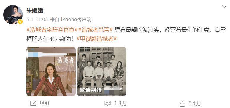 翻看朱媛媛的酬酢账号可知,5月1日,她还在网上为我方的新剧《造城者》作念宣传。