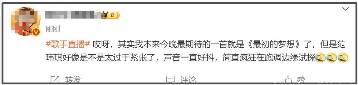 随后,范玮琪走音跑调就激勉了盘问,不外大部分言论照旧相比友好,但愿范玮琪自信点,没关系张细微。还有许多但愿范玮琪踢走马嘉祺的网友,直言此次危险了。