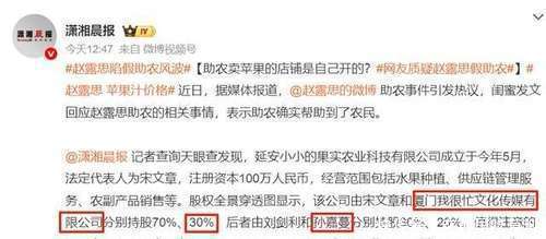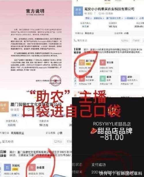 助农居品价钱高企,是这场风云的导火索。以她力推的苹果汁为例,市面上常见的汇源苹果汁,200毫升的价钱不外3块支配,而赵露想直播间里的同类居品,238毫升却要卖到10块!这强大的差价,让不少消耗者感到困惑。更令东谈主猜忌的是,这家助农公司的建立时辰只是是本年五月,况且收款账户与赵露想的甜品店收款东谈主果然是归拢东谈主,通过企业信息查询,还能发现赵露想甜品店的收款东谈主在该公司执有股份。这不禁让东谈主怀疑,所谓的“助农”,是不是只是赵露想过甚相关公司的一场“流量变现”游戏?