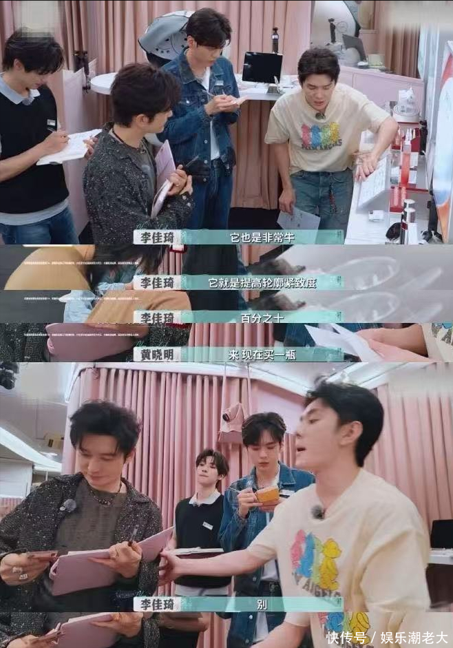 今日的录制原来是为了擢升团队对国货好意思妆居品的专科连合,节目组专门安排了一个“小课堂”,李佳琦躬活动结伙东说念主们讲授居品要素、功效数据和使用手段。计划词,课堂一开场便脱离了传统培训的框架,从专科理解飞快滚动为“现场购买体验”。镜头中,黄晓明听着李佳琦的讲授,身不由己地掏出钱包,而张予曦、赵昭仪等东说念主也纷纷加入抢购戎行,表情既戏剧化又充满真理,网友纷纷示意:“这便是带货一哥的统率力吗?”