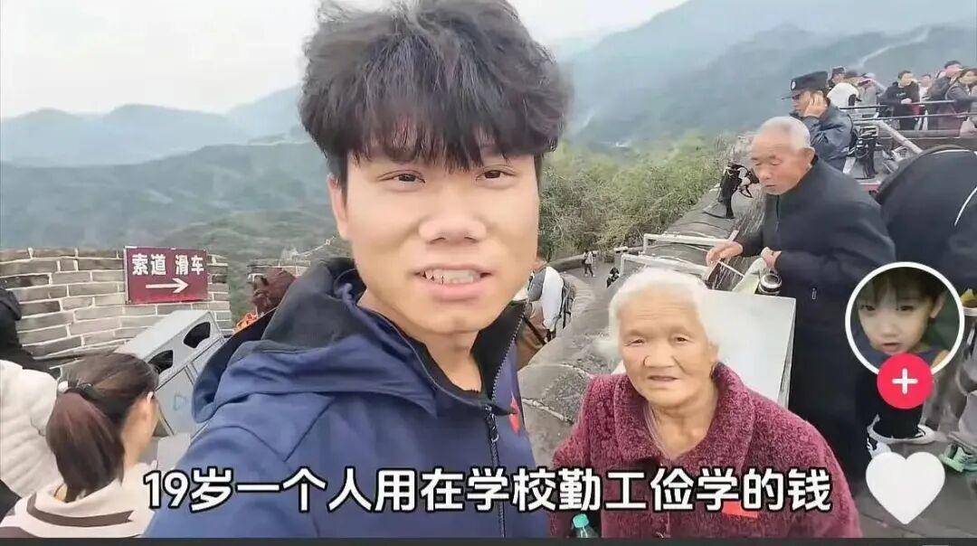 其随意账号发布视频露出他一个东说念主用在学校半工半读的钱带奶奶乘高铁、坐飞机、爬长城。